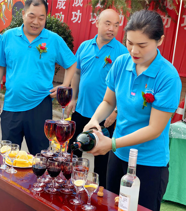為了表示對家人們工作的肯定,董事長親自向大家敬酒